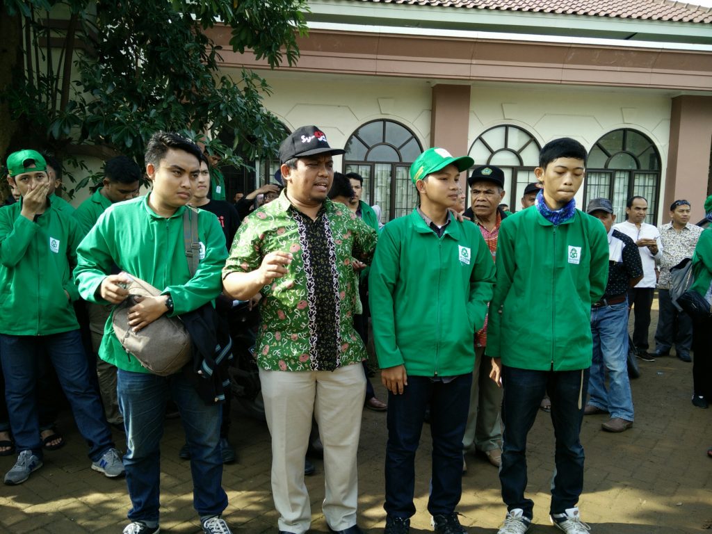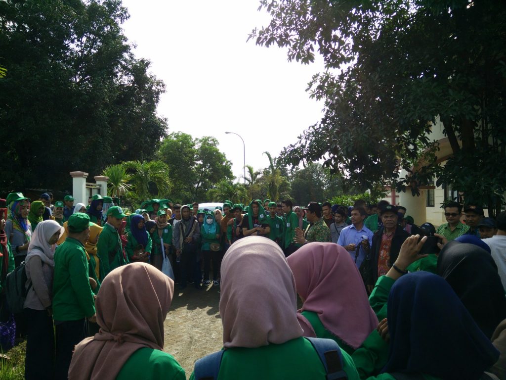 Tampak mahasiswa berkumpul di halaman poliklinik UIN Alauddin. Para mahasiswa akan diberangkatkan ke tiga Kecamatan yaitu, Kecamatan Tombolo Pao, Kecamatan Bajeng, dan Kecamatan Parangloe, Kamis (29/12/2016).