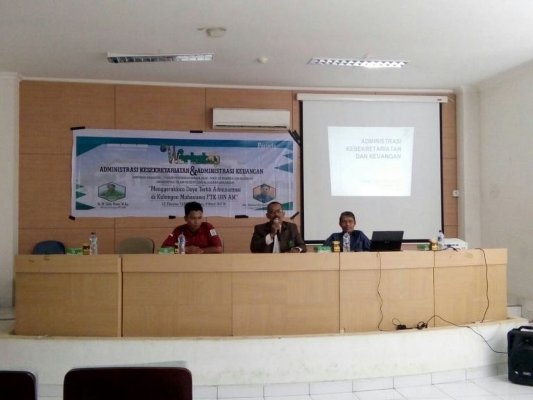 Dengan mengusung tema “Menggerakkan Daya Tertib Administrasi di Kalangan Mahasiswa FTK UINAM”, HMJ PBA menggaet Kajur Pendidikan Guru Madrasah Ibtidaiyah (PGMI) FTK UIN Alauddin Makassar, M Sabir Umar sebagai pemateri.