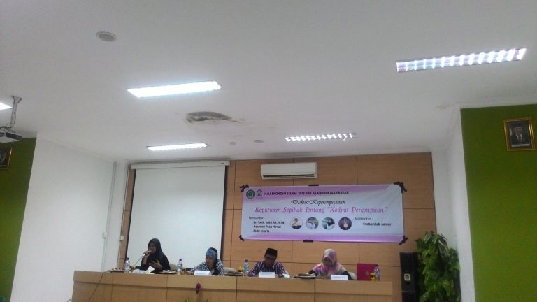 Diskusi keperempuanan yang digelar oleh HMJ Ekis FEBI UIN Alauddin Makassar, menghadirkan Dr Moch Sabri AR, Irmawati Puan Mawar, dan Rizky Aftaria sebagai narasumber yang berlangsung di LT FSH. Jumat (28/04/2017)