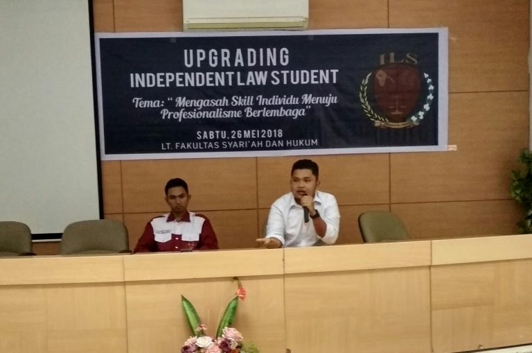 Washilah – Independent Law Student (ILS) Gelar Upgrading dengan mengusung tema “Mengasah Skill Individu Menuju Profesionalisme Berlembaga,” berlangsung di Lecture Teatre (LT) Fakultas Syariah dan Hukum (FSH) UIN Alauddin Makassar. Sabtu (26/5/2018)