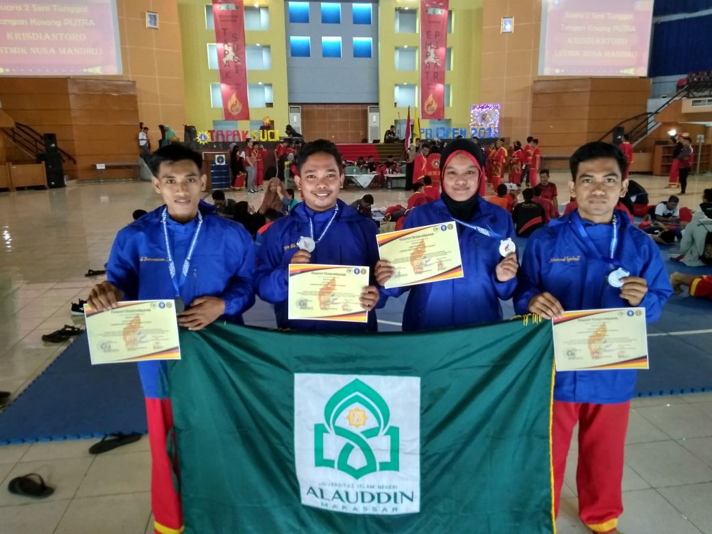 Washilah – Unit Kegiatan Mahasiswa (UKM) Tapak Suci Universitas Islam Negeri (UIN) Alauddin Makassar meraih juara di beberapa kategori pada ajang Tapak Suci IPB Open 2018 National Collage Championship, berlangsung di Graha Widya Wisuda, Institut Pertanian Bogor (IPB). Sabtu (05/05/2018)