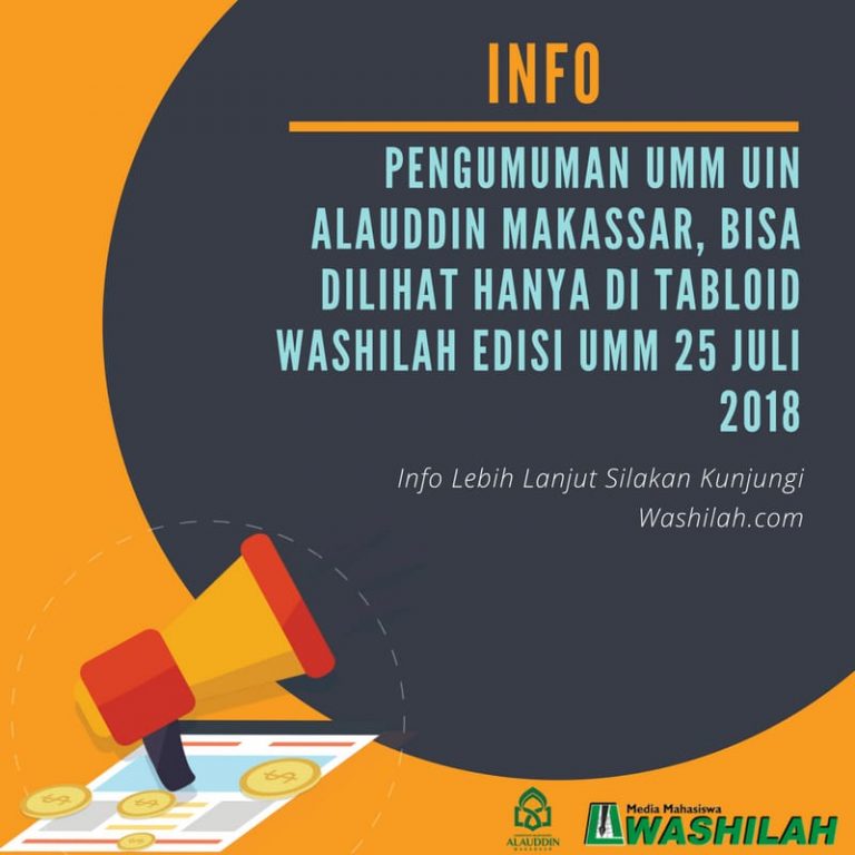 Washilah – Pengumuman hasil Ujian Masuk Mandiri (UMM) UIN Alauddin Makassar akan dimuat dalam tabloid media kampus Unit Kegiatan Mahasiswa (UKM) LIMA Washilah pada 25 Juli 2018, besok.