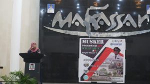 Sambutan WADEK III FDK Dr Nursyamsiah M Pd I dalam pembukaan MUSKER FORKOMNAS KPI Wilayah V di gedung Anging Mammiri Makassar. Jumat (28/09/2018).