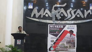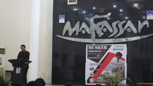Sambutan Ketua Jurusan KPI Dr Kamaluddin Tajibu M Si dalam pembukaan MUSKER FORKOMNAS KPI Wilayah V di gedung Anging Mammiri Makassar. Jumat (28/09/2018).