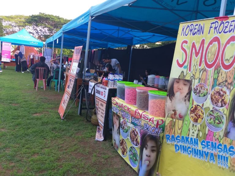 Suasana tenant makanan dan hijab di kegiatan Saintek Fest 2018 yang bertempat di lapangan kampus II Universitas Islam Negeri (UIN) Alauddin Makassar. Rabu (28/11/2018)