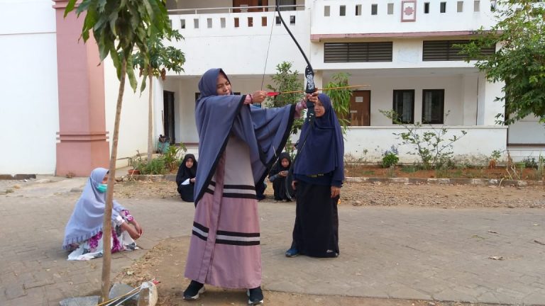 Washilah – Unit Kegiatan Mahasiswa (UKM) Lembaga Dakwah Kampus (LDK) Al Jami’ mengadakan Akhwat Tangguh berupa kegiatan memanah yang bertajuk “Action Muslimah Tangguh,” di pelataran Fakultas Ushuluddin Filsafat dan Politik (FUFP), Minggu (13/10/2019).