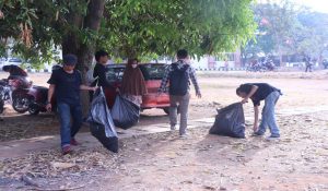 Puluhan mahasiswa dari berbagai lembaga intra kampus bersama-bersama turun ke jalan untuk mengumpulkan sampah yang berserakan di sekitar kampus UIN Alauddin Makassar