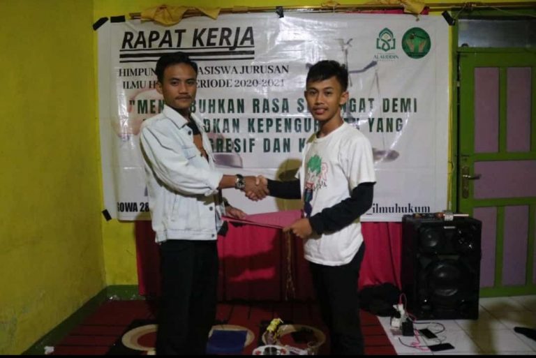 Washilah – Himpunan Mahasiswa Jurusan (HMJ) Ilmu Hukum (IH) periode 2020 tetapkan 17 program kerja dalam Rapat Kerja (Raker) pada tanggal 28-29 Februari 2020 di Malino, Kabupaten Gowa, dengan mengusung tema “Menumbuhkan Rasa Semangat Demi Mewujudkan Kepengurusan yang Progresif dan Kreatif”.