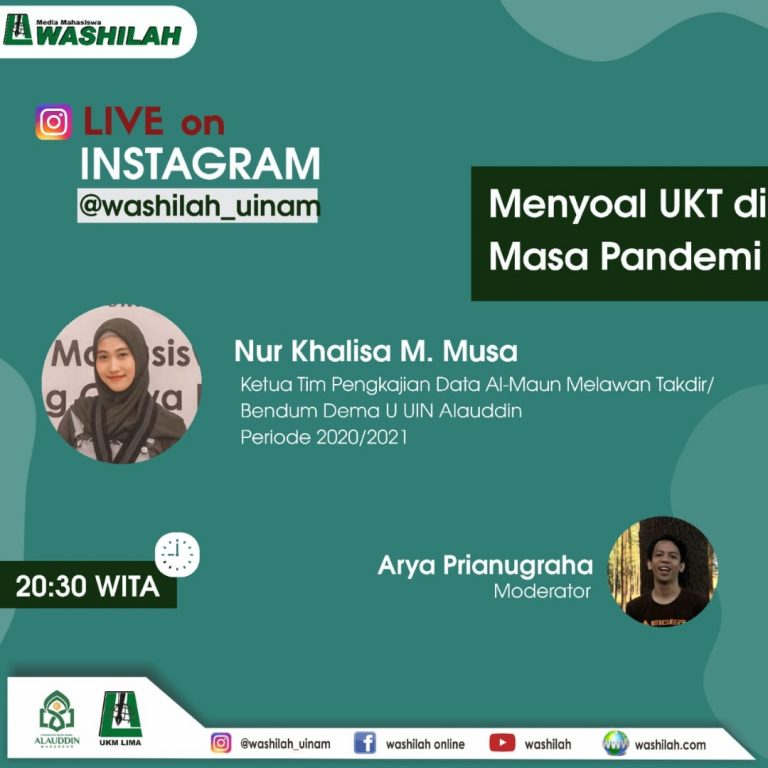 Washilah – Unit Kegiatan Mahasiswa (UKM) Lembaga Informasi Mahasiswa Alauddin (LIMA) media Washilah, kembali menggelar diskusi online bertema menyoal UKT dimasa pandemi, Kamis (9/07/2020).