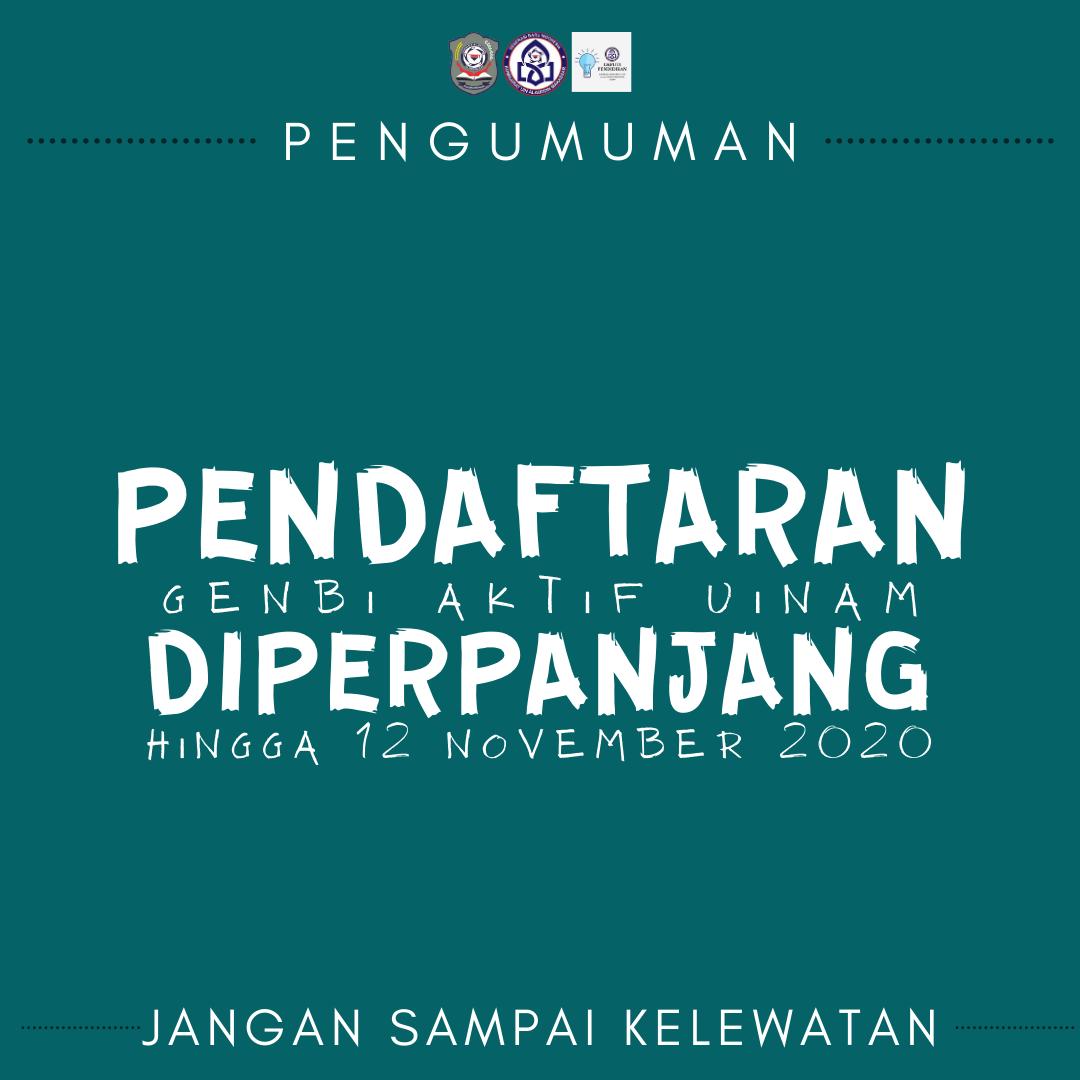 Washilah- Generasi Baru Indonesia (GenBI) komisariat UIN Alauddin Makasssar deputi pendidikan memperpanjang waktu pendaftaran lomba GenBI esai kreatif UIN Alauddin Makassar (GenBI AKTIF UINAM) yang mengusung tema “Pemuda dan Persatuan” hingga tanggal 12 November 2020, secara Daring.