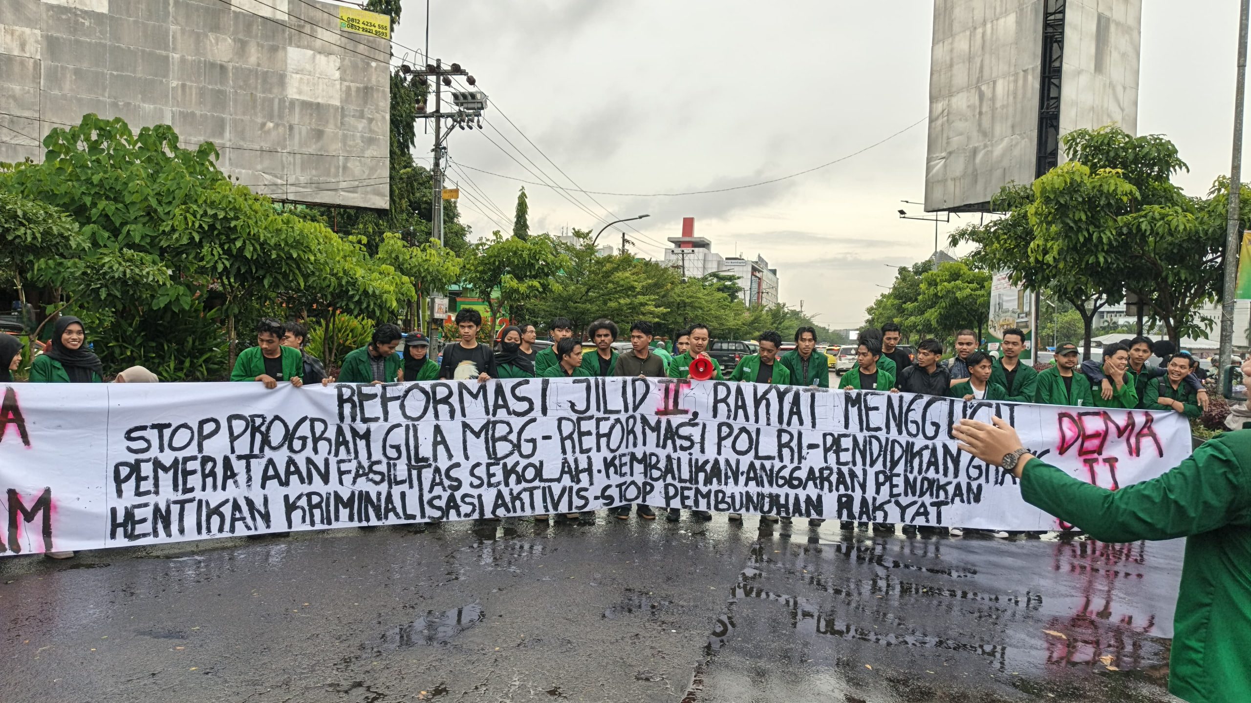 Washilah — Dewan Eksekutif Mahasiswa (DEMA) UIN Alauddin Makassar menggelar aksi demonstrasi besar bertajuk “Reformasi Jilid II: Rakyat Menggugat” di perempatan Jalan AP Pettarani – Jalan Sultan Alauddin pada Jumat (6/3/2026).