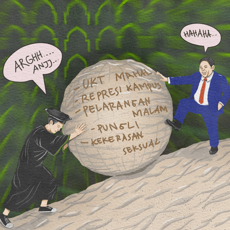 Beban dan keresahan mahasiswa. | Ilustrasi: Senyap