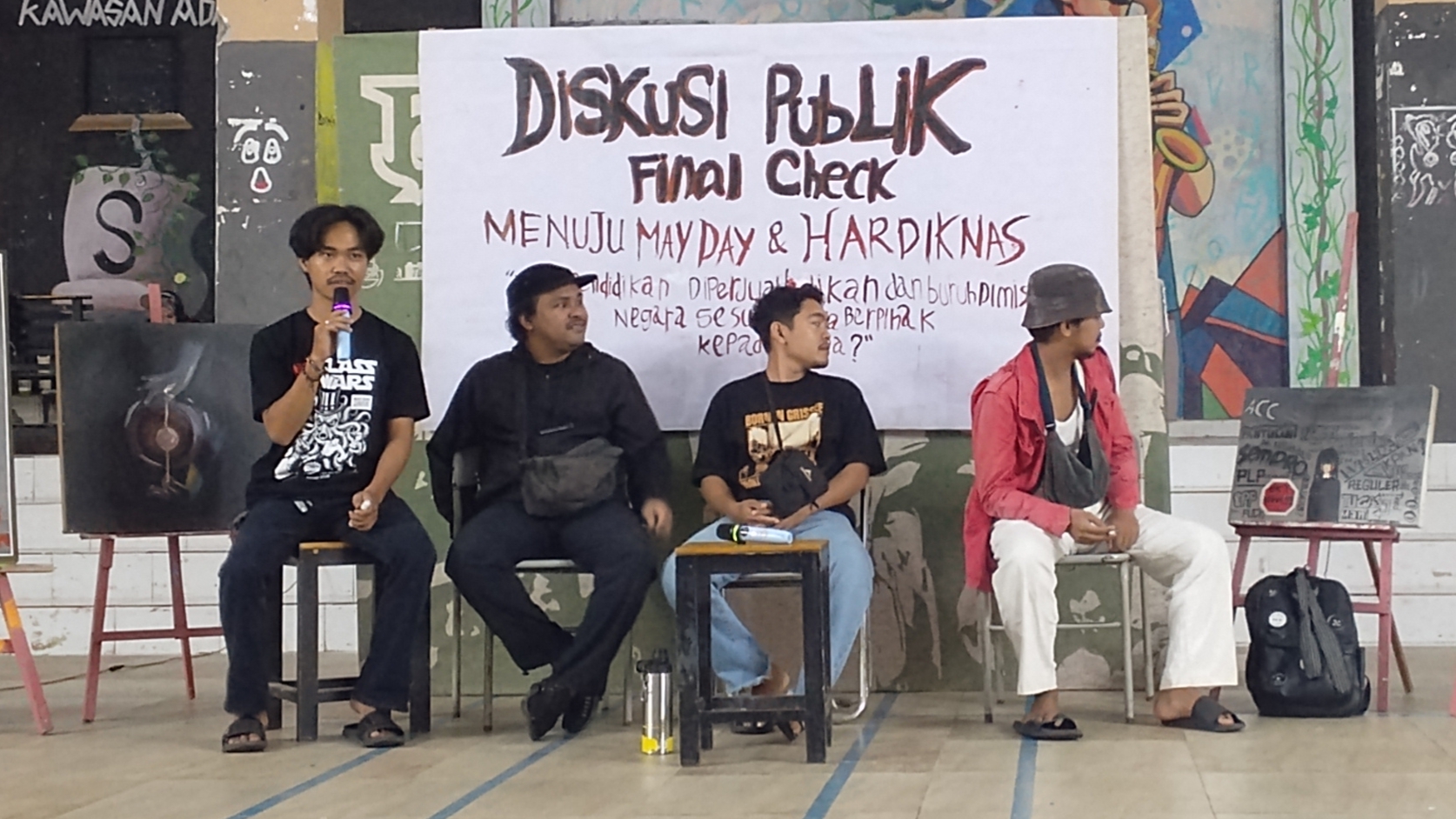Dalam diskusi tersebut, sejumlah pembicara menyoroti persoalan pendidikan, ketenagakerjaan, hingga menyempitnya ruang kritik di kampus.